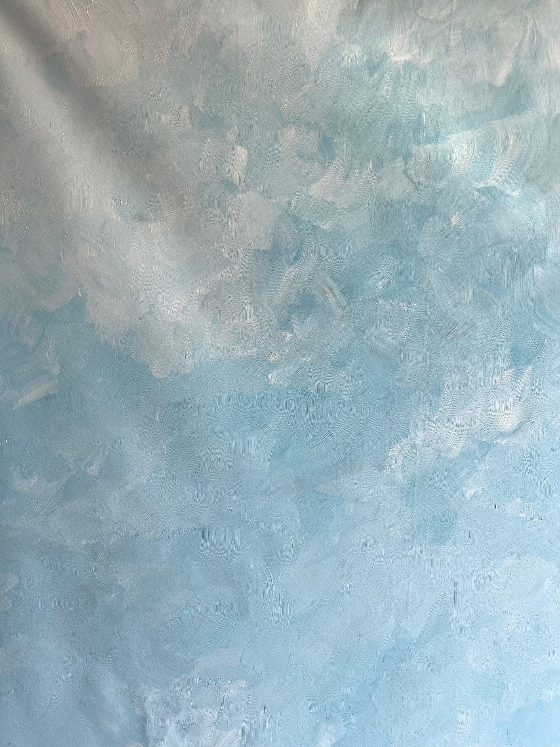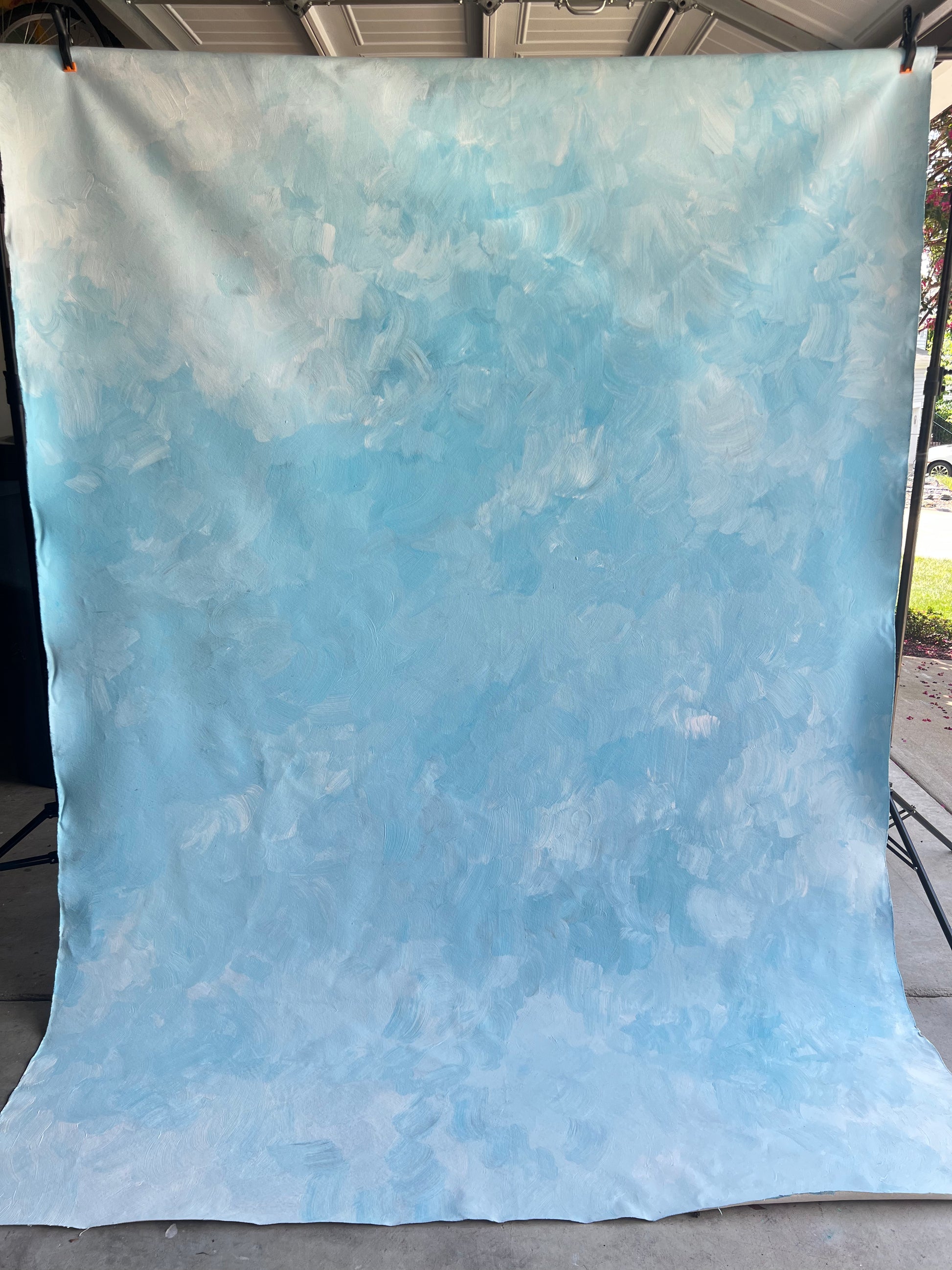 Large Backdrop hand painted in bright light blue with white and light exture.